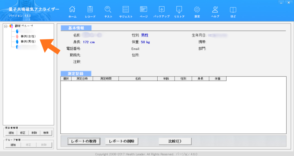 まずは、通常どおり被験者の測定を行ってください。