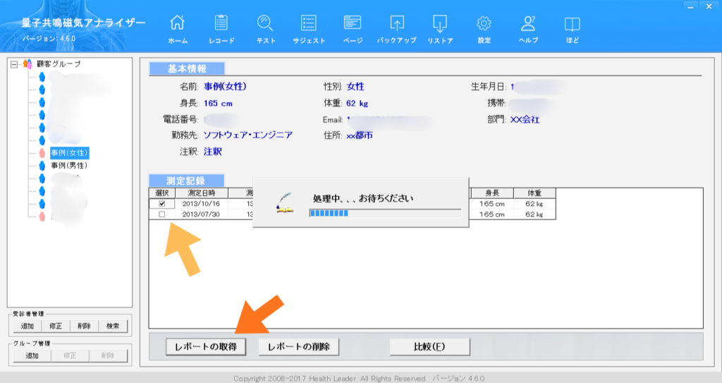 4.測定日を選び、レポートを取得します
