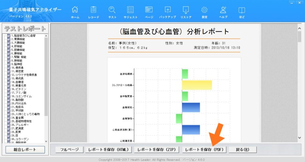 測定結果がPDFファイルとして保存されます。