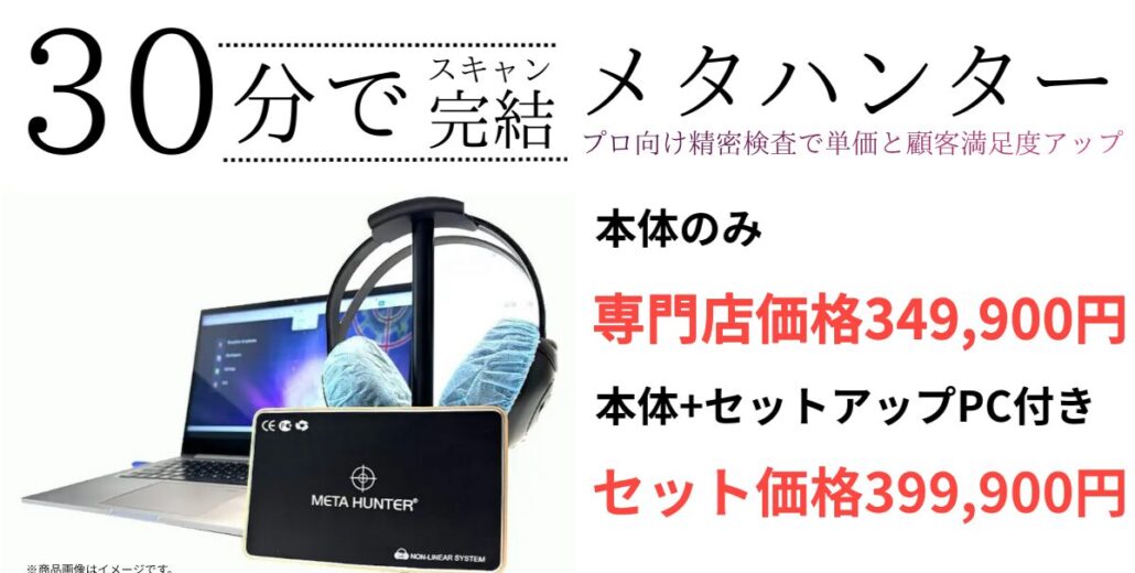 「なんとなく」から「見える施術」へ。プロも愛用。初めてでも使える波動測定器《メタハンター》で、差がつくカウンセリングを始めませんか? その施術、勘や経験だけで続けていませんか? クライアントを目の前に、「なんとなく今日は … 続きを読む メタハンター【波動測定器・バイオレゾナンス専門店の企画開発新製品】MetaHunter